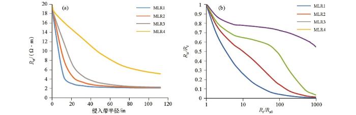 a—侵入半径的影响;b—侵入带电阻率的影响