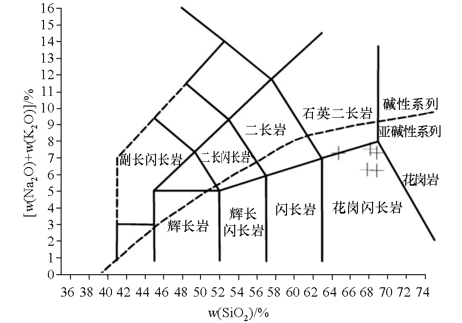 | Fig.4 Diagram of TAS rock classification in Yangkang area |