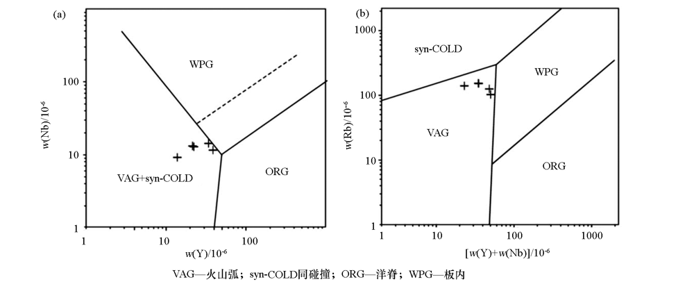 | 图8 w(Nb)-w(Y)图解(a)和w(Rb)-[w(Y)+w(Nb)]图解(b) |