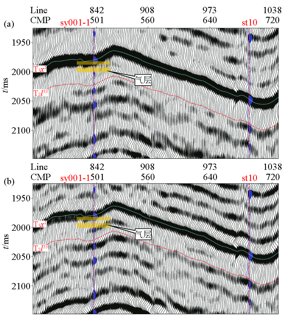 | 图5 经验模态分解技术高分辨率处理前(a)后(b)地震剖面 |