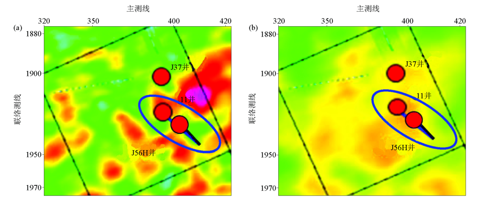 | 图9 常规振幅平面属性(a)与基于流体因子的平面属性(b) |