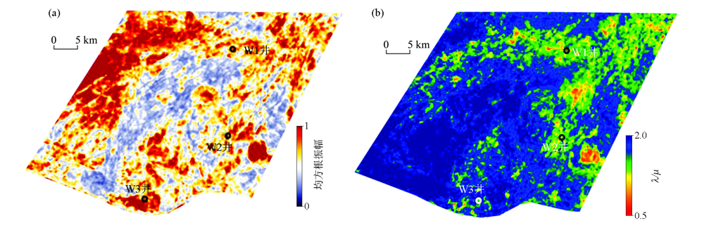 | 图10 R1180层均方根振幅(a)和流体因子λ/μ反演结果(b) |