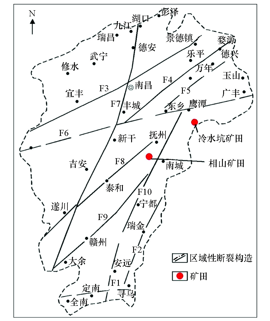 | 图1 相山矿田与冷水坑矿田大地构造位置示意 |