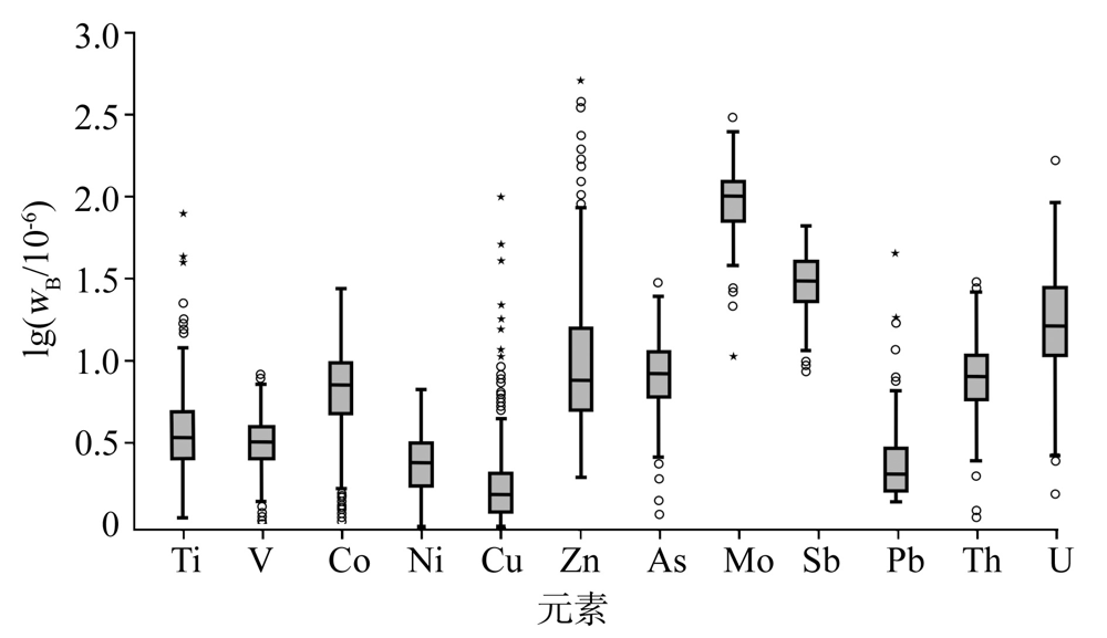 | 图5 元素含量对数转换后的箱状图 |