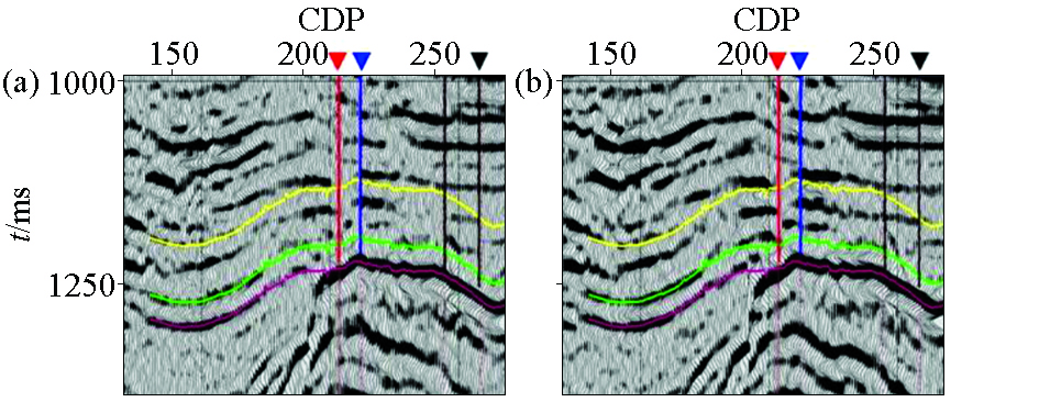 | Fig.13 Comparison of two seismic sections after time-lapse seismic processing a—Shao-Yi 3D in 1990;b—Yidong-high precision 3D in 2013 |