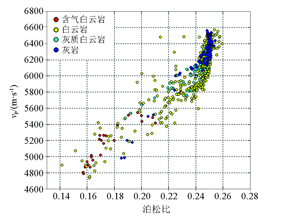 | Fig.5 The statistic graph of P-wave velocity versus poisson's ratio |
