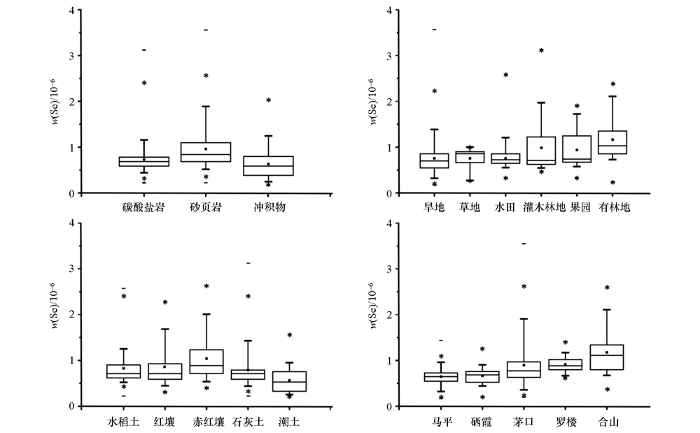| 图3 不同类型样品土壤硒含量箱型图 |