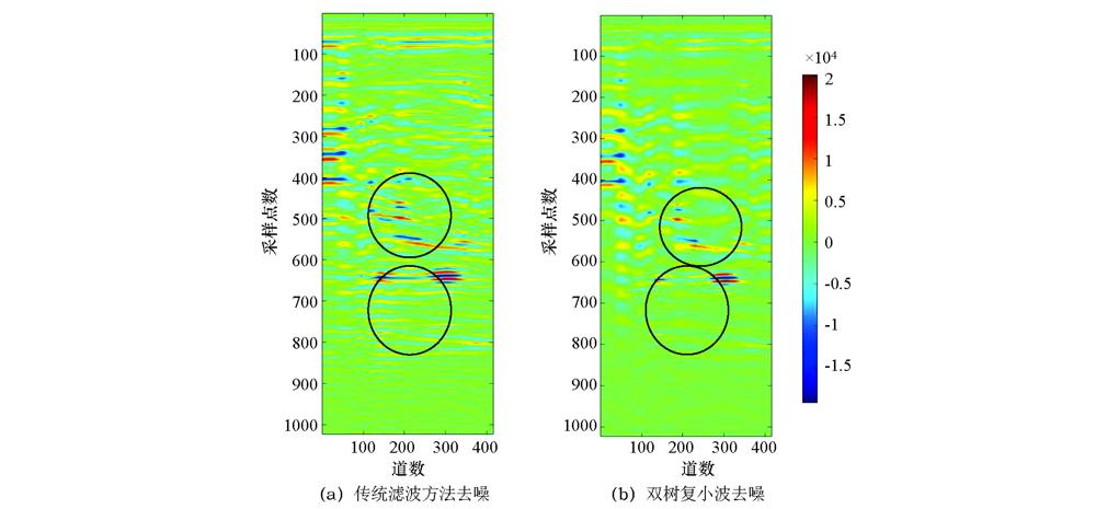| 图6 1#掌子面传统滤波与双树复小波去噪结果对比 |