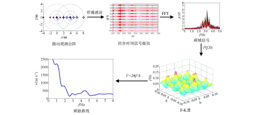 | 图2 F-K法提取面波频散流程示意 |