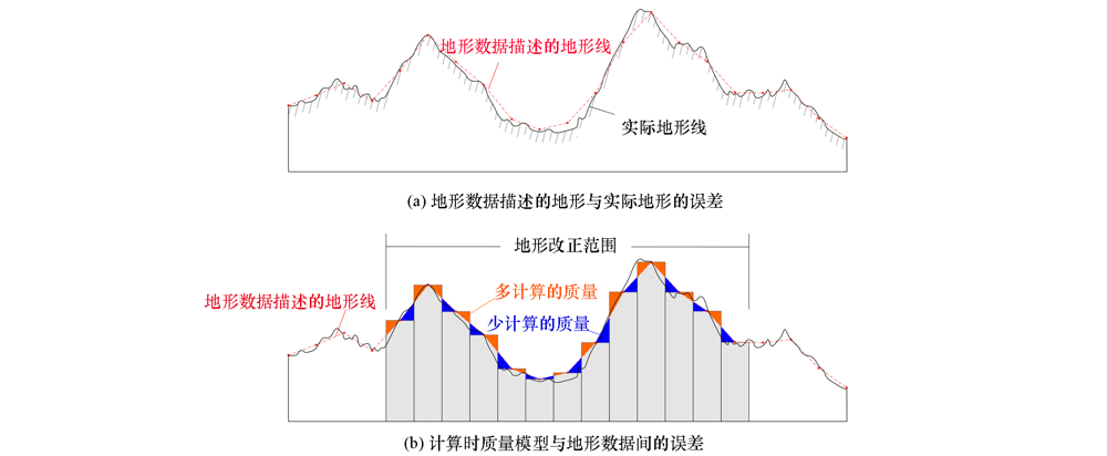 | Fig.1 Schematic diagram of two kinds of errors in gravity terrain correction |