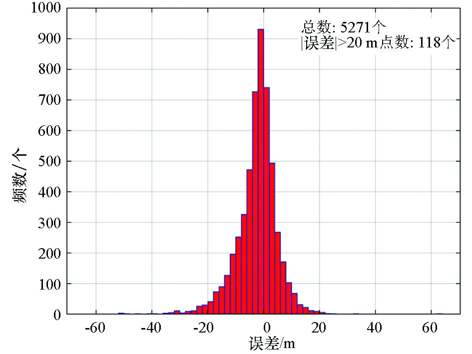 | Fig.2 Histogram of error distribution between measured elevation and DEM elevation |