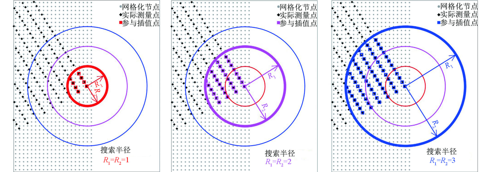 | 图13 搜索半径R1与R2相等时插值点分布图示(网格化节点范围见 |