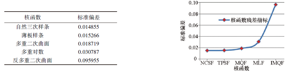 | Fig.2 Residual results and curve of the five kernel functions |