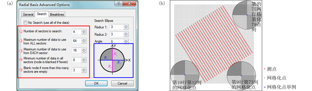 | 图4 搜索界面选项(a)与搜索点分布图示(b) |