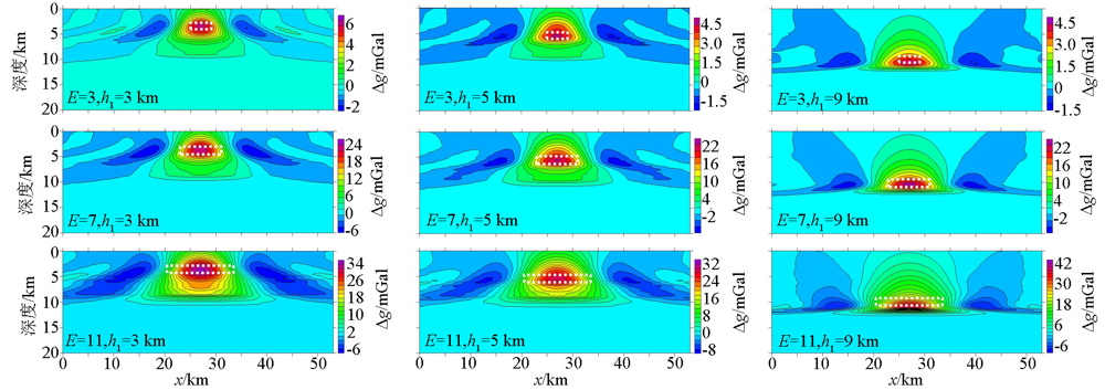 | 图4 不同形态水平长方体重力场下延成像 |