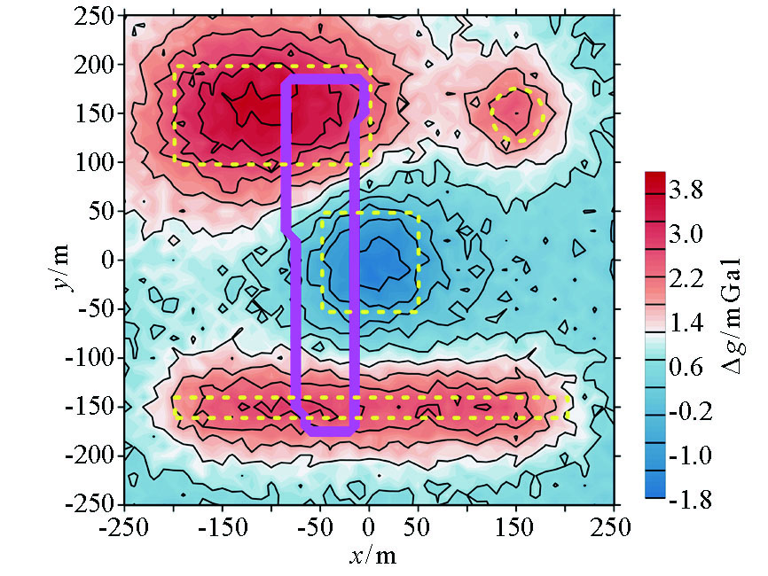 | Fig.7 Gravity anomaly and missing site after adding 30% random noise of |