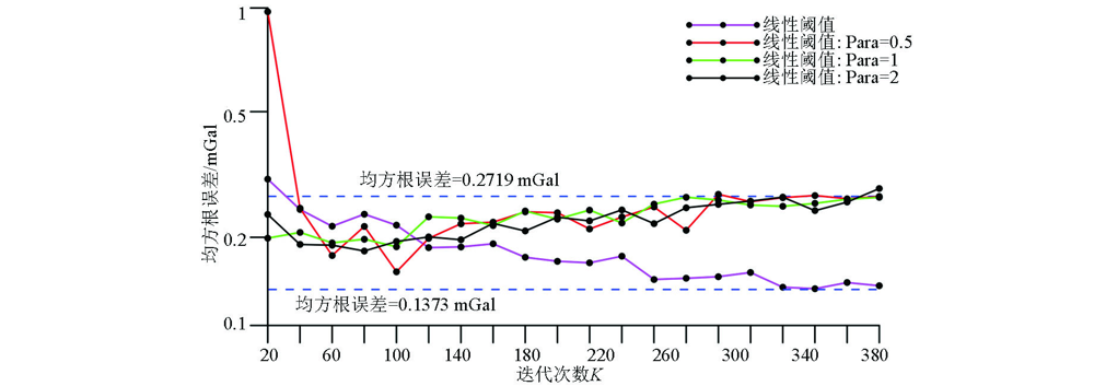 基于DCT的广义指数阈值衰减凸集投影算法在位场数据补空中的应用 |