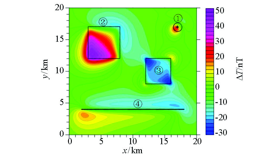 | Fig.2 Forward magnetic anomaly of multi-source model |