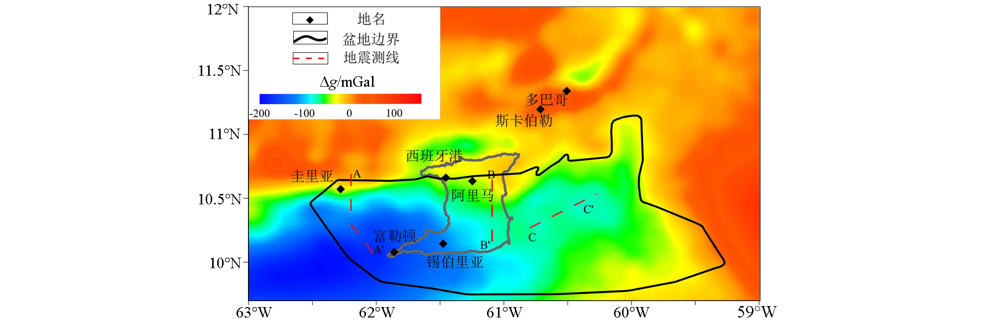 | 图3 特立尼达盆地及邻区布格重力异常 |