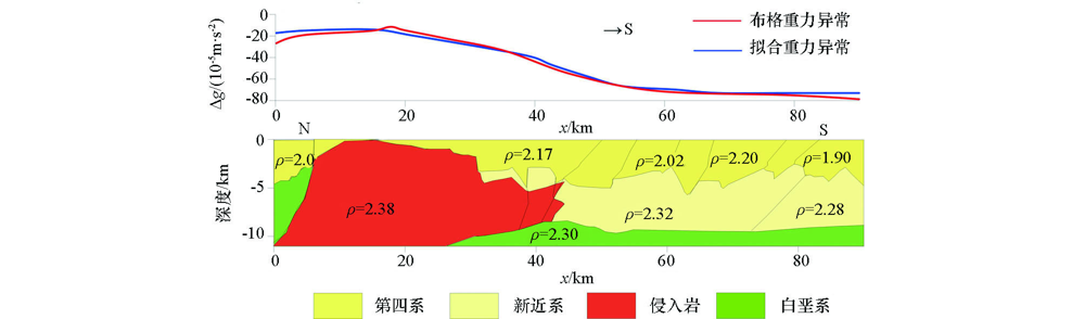 | 图9 BB'剖面拟合结果(密度单位为103 kg/m3) |