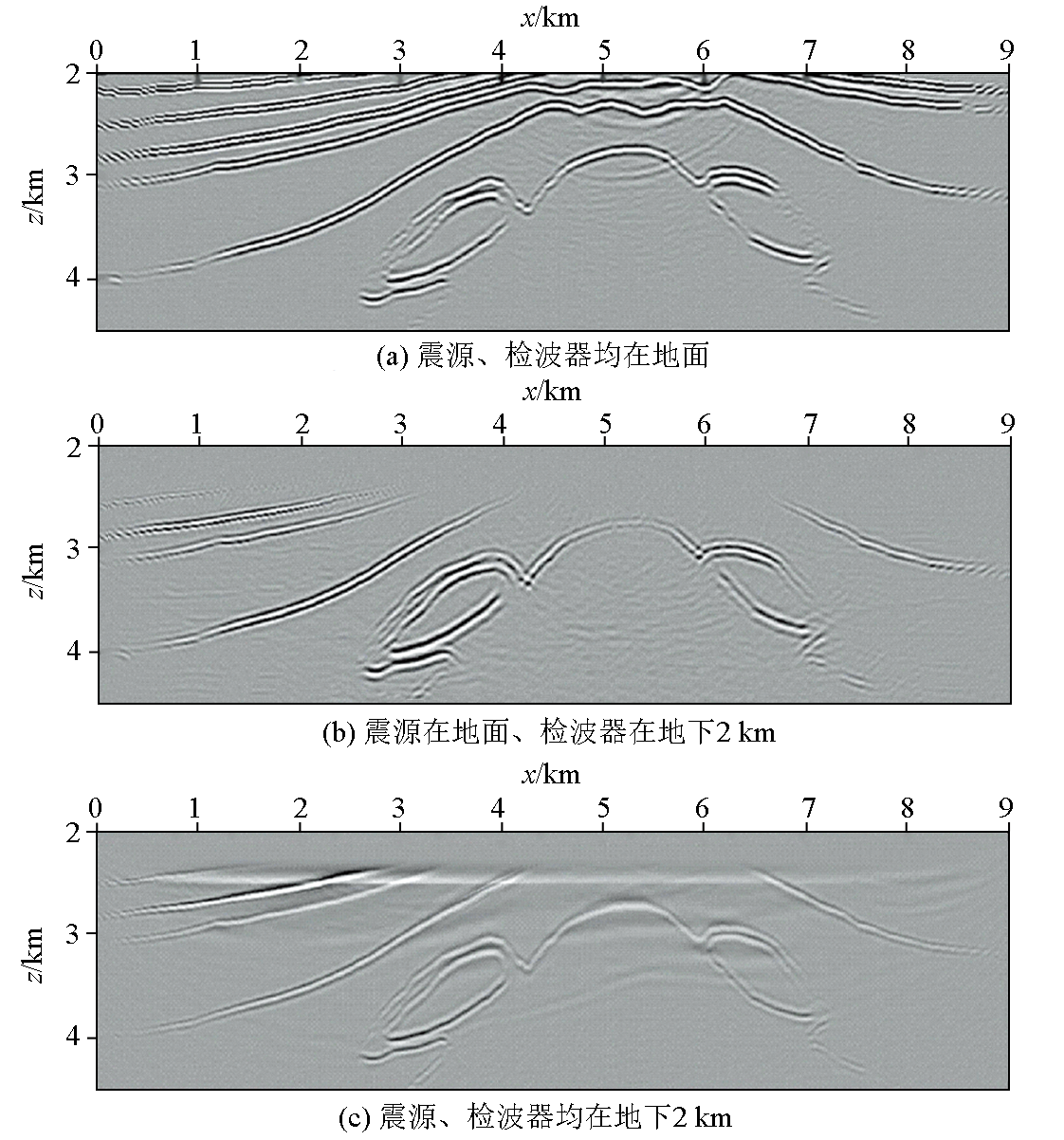 | 图11 不同虚拟采集系统成像剖面 |