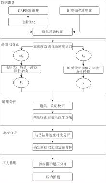 Processing flowchart for non-hypobolic moveout correction in overpressure distribution indicatioon