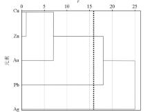 | 元素 | Au | Ag | Cu | Pb | Zn | | Au | 1 | | | | | | Ag | 0.452 | 1 | | | | | Cu | 0.614 | 0.480 | 1 | | | | Pb | 0.479 | 0.327 | 0.365 | 1 | | | Zn | 0.566 | 0.339 | 0.662 | 0.574 | 1 |