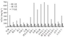 Zn abundance in the different types soil of parent materials from Jiangsu Province