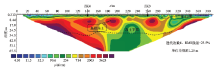 由图5可得, 浅部电阻率0~15 Ω · m为第四系粉砂黏土、碎石类土、卵石等, 厚度5~10 m, 与探地雷达结果一致; 电阻率大于25 Ω · m为新近系灰岩、泥灰岩, 厚度50~60 m; 电阻率小于25 Ω · m为古近系泥岩, 厚度大于100 m。冻土区电阻率变化范围20~90 Ω · m, 冻土下限深度变化范围30~40 m, 与探地雷达探测结果一致。
