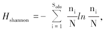 其中:Sobs=实际测量OTU数目, ni=含有i条序列的OTU数目, N=所有的序列数。