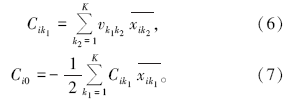 yk表示待预测样本的第k个测井值, 识别函数系数矩阵C中: