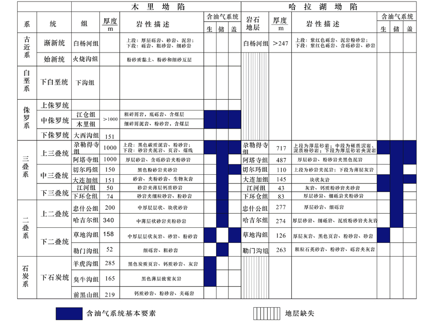 坳陷的构造沉积演化在一定程度上控制烃源岩层的生烃潜力及保存条件。盆地构造演化和古地理研究表明:两个坳陷在古生代石炭纪时具有不同的沉积沉积环境, 北部木里坳陷受NE向海水入侵, 形成浅海陆棚沉积环境, 南部的哈拉湖坳陷延续泥盆纪的夷平作用, 缺乏该套地层。二叠纪时期, 木里坳陷和哈拉湖坳陷沿中祁连南缘断裂发生差异升降活动, 前者抬升露出水面, 发育部分海相沉积和大量陆相沉积, 哈拉湖坳陷受南侧海侵影响, 发育海相沉积, 呈南海北陆格局, 从古地理角度分析, 哈拉湖坳陷二叠系的烃源岩质量可能优于木里坳陷; 晚三叠纪末, 整个南祁连盆地抬升为陆, 成为剥蚀区; 受早燕山期伸展作影响, 木里坳陷拉张形成山间条带状断陷盆地, 侏罗纪接受了一套山间河湖沼泽相含煤碎屑岩建, 哈拉湖坳陷则持续遭受剥蚀, 缺乏侏罗统沉积, 同时地层遭受剥蚀, 不利于天然气的保存。