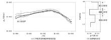 图5同样是低阻区典型视电阻率曲线形态二及电性分层, 与图4略有不同, 地表没有低阻层, 主要是位于沟底地带, 植被覆盖, 季节性融化不明显。图5a在高频段存在一个高阻层, 推断为冻土层; 图5b为与之对应的其中一条曲线一维反演电性分层, 具有一定的代表性, 浅部电性分层为高阻— 低阻— 高阻特征, 第一高阻层解释为冻土层, 电阻率为1 000~2 500 Ω · m, 厚度在30~50 m之间, 低阻层为冰土混合状的融溶层, 电阻率为20~100 Ω · m, 厚度在30~45 m之间, 第二高阻层为非冻岩层, 电阻率为500~800 Ω · m, 比冻土层的电阻率小4~6倍。