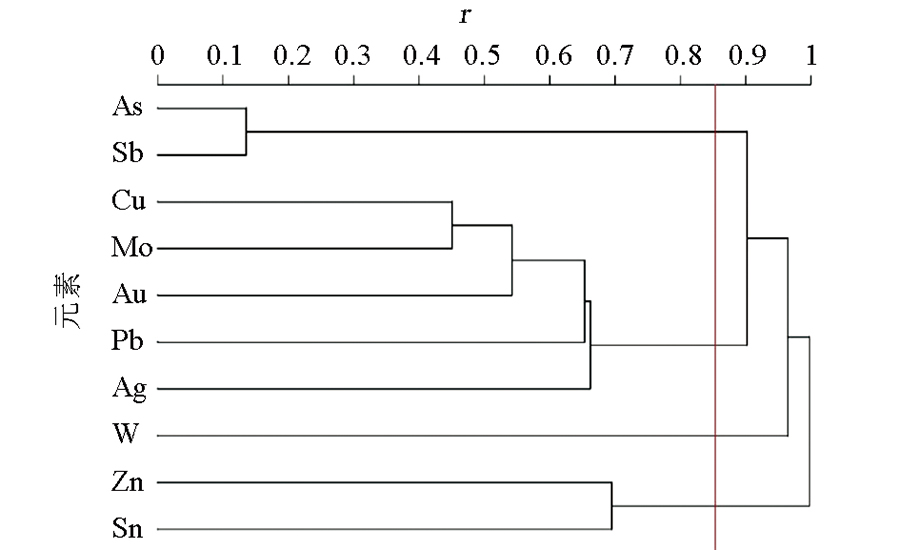 | 图4 研究区岩屑测量R型聚类分析谱系 |