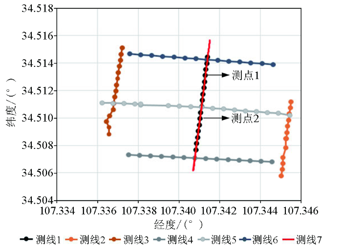 研究区位于凤翔县城的西南侧4 km处,该区地势起伏平缓,地表被黄土层覆盖。如图2所示,被动源测线共6条(测线1-6),布设为“田”字形,采用1~60 Hz宽频带DZS-1数字深层地震仪进行采集,点距50 m,采样率10 ms,采样时间10 h。测线7为主动源面波采集测线,使用Geopenminiseis24工程地震仪,24道4.5 Hz低频检波器接收,道间距2 m,偏移距6 m,采样时间1 s,采样率0.5 ms,每一炮记录进行3次叠加。