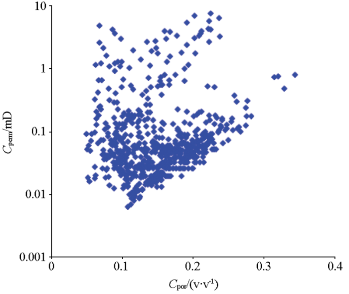 式中:K,渗透率,mD;ψ,孔隙度,v/v。
