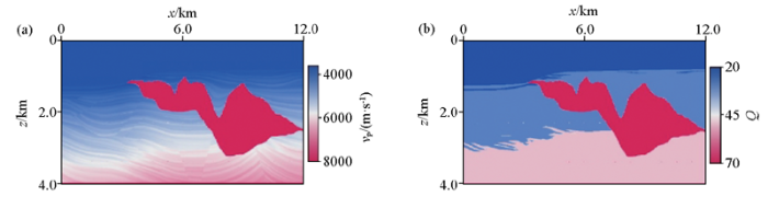 衰减Sigsbee2B速度模型(a)和Q模型(b)
