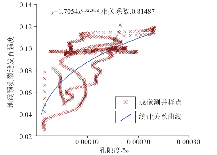 测井解释孔隙度与地震预测裂缝强度交汇图