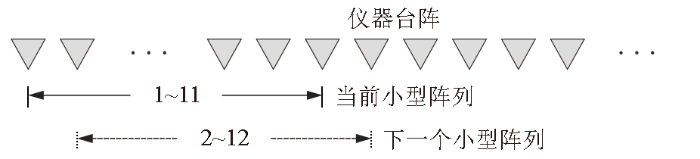 例如,以第1~11号仪器为一个排列,中心测点是6号仪器,记录测点为1号。排列后移一个道间距,形成2~12号仪器的新排列,中心测点变为7号仪器,记录测点为2号。以此类推,后续排列同理调整。