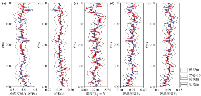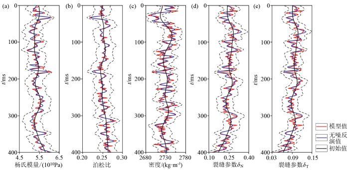 众多研究结果表明,页岩储层通常发育有一组或者多组的水平或垂直裂缝,存在一定的各向异性特征[7-10]。将处于简单构造带上的页岩储层进行一定的近似与简化,可将其看作具有垂直对称轴的横向各向同性(transverse isotropy with vertical axis of symmetry,VTI)介质,经过叠前各向异性反演表征裂缝发育状态的各向异性参数,可对地下页岩储层的含气性进行评估。Plessix等[11]在系统研究垂直横向各向异性对反射系数影响的基础上,利用纵横波联合的多波多分量叠前地震数据开展了VTI介质的多参数反演方法,对提高VTI介质参数的反演精度从而更好地利用叠前反演技术进行油气勘探和岩性识别提供了重要的理论基础与实践意义。在多波探测研究发展的浪潮中,侯栋甲等[12]基于贝叶斯理论提出了一种适用于VTI介质中的多波数据的叠前纵横波联合反演方法,旨在采用Ruger近似来表示各向异性介质中的反射系数作为正演方程,并使用最小二乘优化联合反演密度比、速度比以及各向异性参数差等5个岩石物理参数;在反演中其进一步引入了贝叶斯理论,假设未知参数服从高斯先验信息和改进的柯西分布,与仅使用纵波数据的常规反演相比,提高了反演的精度、抗噪能力和稳定性。在上述研究基础上,Lu等[13]发展了一种各向异性振幅随偏移距变化(amplitude variation with offset,AVO)的反演方法,该方法能够同时反演弹性参数和Thomsen各向异性参数,联合使用了PP和PS地震数据,考虑了各向异性AVO 反演中的局部极小值的问题。解决策略采用分步反演,在两个阶段进行等向性和各向异性AVO反演,并使用第一阶段的结果来约束第二阶段的反演,此外,研究中改进了基于欧几里德距离相似性的停止条件来控制噪声情况下的迭代。该研究在识别储层中细层的复杂岩性和流体信息方面具有很好的可行性与有效性,在处理复杂地质条件下的储层特征识别方面具有重要意义。基于精确VTI方程,Lang等[14]给出了一种可以克服部分现有线性近似局限性的用于横向各向同性(VTI)介质的PP 波反射系数方程,新反射系数方程与精确各向异性反射系数方程相比,通过相对值替换,减少了反演参数的数量,之后,使用马尔可夫链蒙特卡罗(Markov chain Monte Carlo,McMC)算法的贝叶斯反演框架,得到了5个反射率参数的反演结果。该方法进一步提高了反演的稳定性,为含油气页岩储层各向异性地震解释提供了一种改进方案。