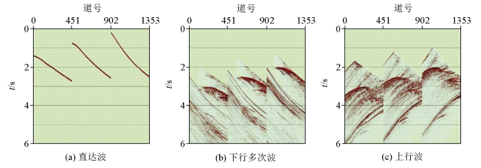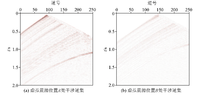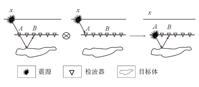方程(11)说明,当震源数量足够多,且围绕检波点均匀分布在封闭边界上时,对两个检波点的记录互相关并求和,能够得到以其中一个检波点为虚拟震源、另一个检波点为虚拟检波点的地震记录。