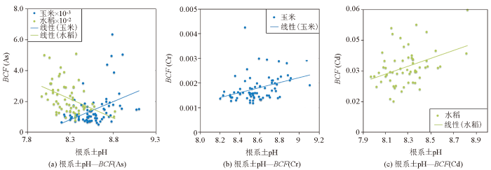 3)土壤pH与作物对重金属富集系数的相关性与作物和重金属类型有关,其中玉米Cr、As富集系数受pH影响显著,水稻As富集系数则随pH增加而下降。
