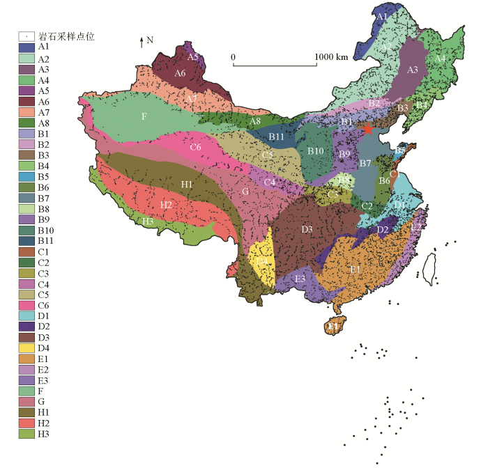 地球系统中不同圈层关键元素分布和循环被美国自然、工程与医学科学学院列为地球科学领域重大科学问题[1]。出露地壳是岩石圈与土壤圈[2]、水圈[3]、大气圈[4]等直接接触的界面,是地球系统中元素迁移循环的关键场所,对环境与人类健康影响深远。通过绘制出露地壳岩石地球化学图,可以掌握出露地壳元素含量的空间分布模式,为元素分布与循环研究提供关键的地球化学资料[5