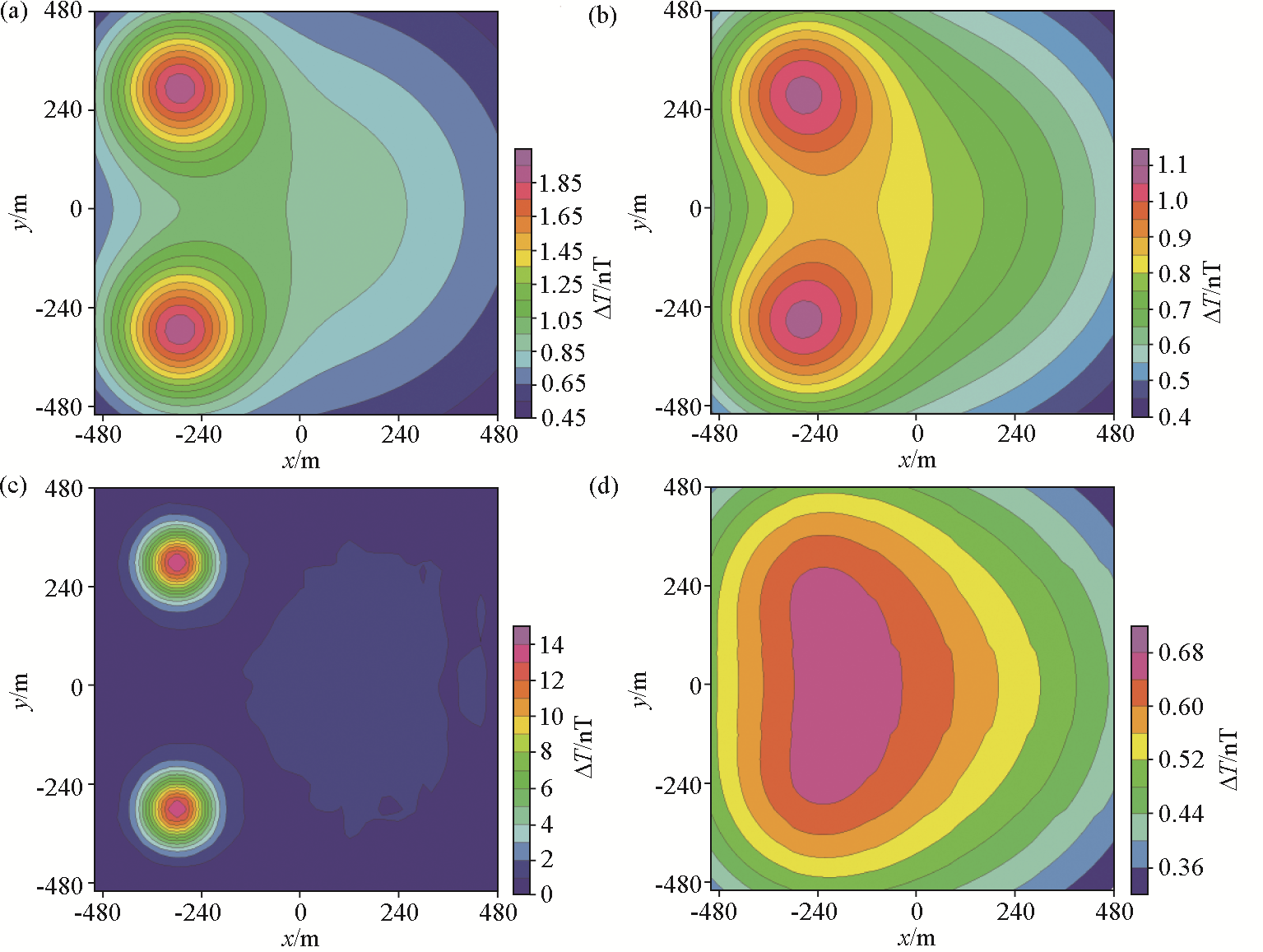 | 图15 改进分块方法延拓50 m和200 m的结果 a—下延50 m;b—上延50 m;c—下延200 m;d—上延200 m |