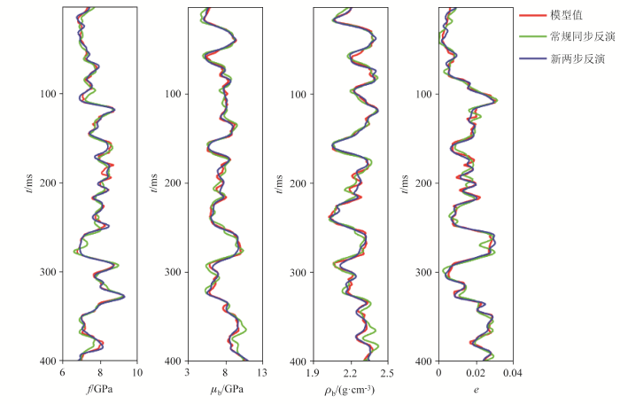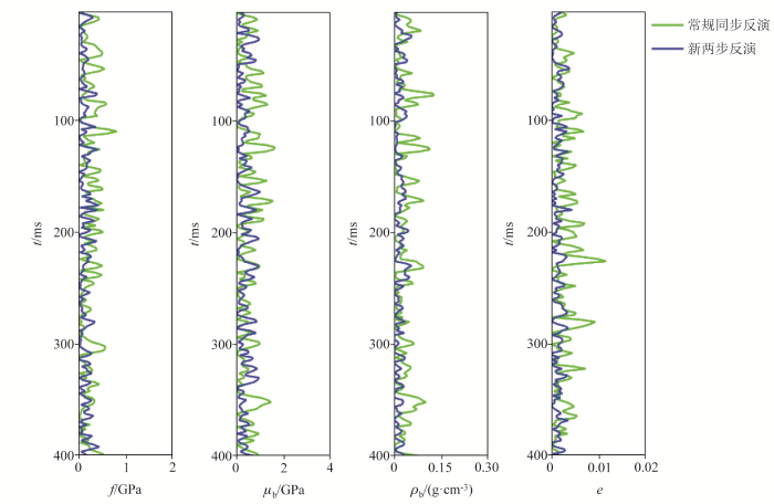 (a) Interlayer slices of fluid factor f (a) and fracture density e (b) inversion results based on the new Bayesian two step azimuth seismic inversion method