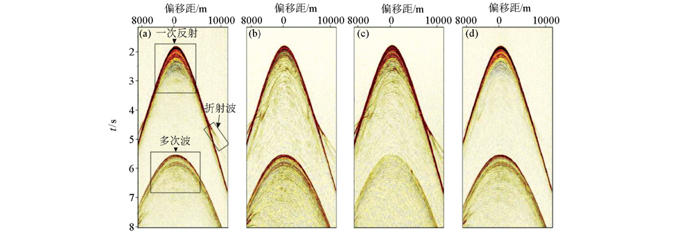 | 图5 波场分离效果 a—P分量;b—标定后Z分量;c—上行波;d—下行波 |