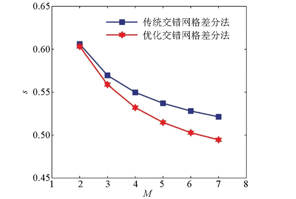 | 图4 不同交错网格有限差分法的稳定性因子曲线 |