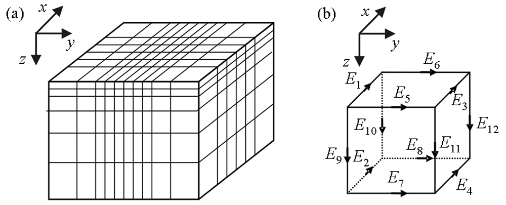 | Fig.2 Domain subdivision of the vector finite element method a—domain subdivision; b—location of electric field components |