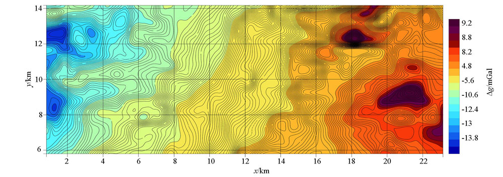 | Fig.6 Based on the Bouguer gravity anomaly map of the remote area of RGIS with its own elevation |
