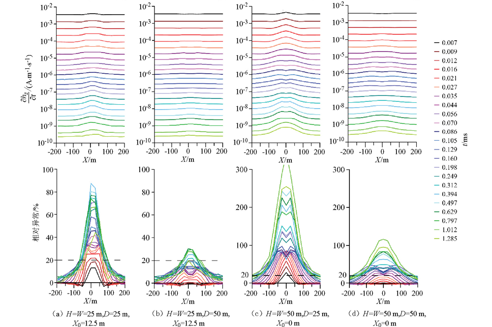 | 图3 不同厚度、不同埋深塌陷体OCTEM响应 |